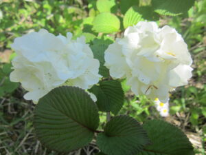 日本原産のヤブデマリの園芸品種と言われています。真っ白なボール状の花が尊い。
