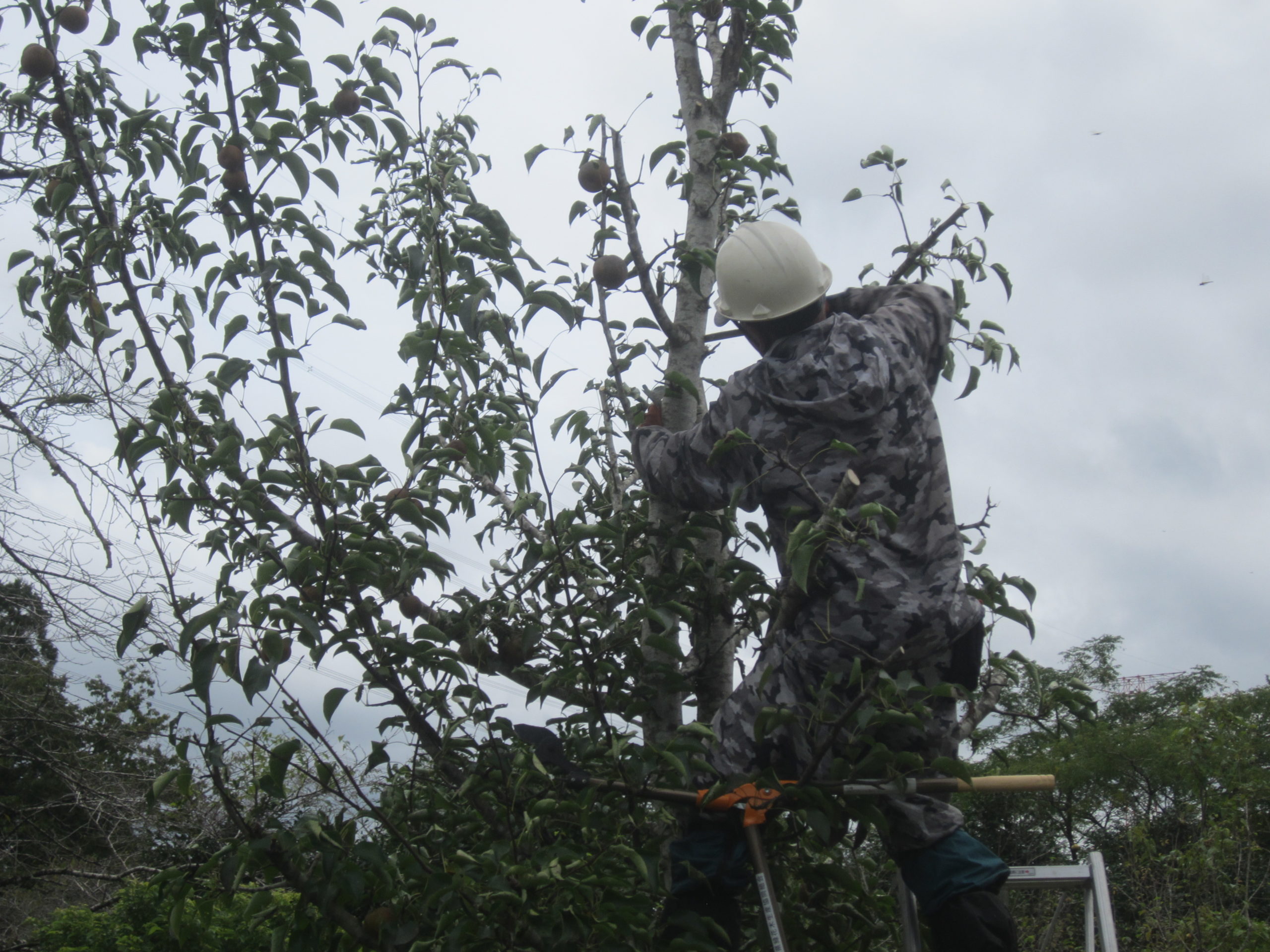 高く伸びた「ヤマナシ」の枝を落とす剪定作業を行いました。今年は、ヤマナシの実が鈴なりです。あまりに高く伸びすぎたのでバッサリ。9月はハチも出てくるシーズン。ブンブンと羽音がする中での作業となりました。 剪定作業を行ってい […]